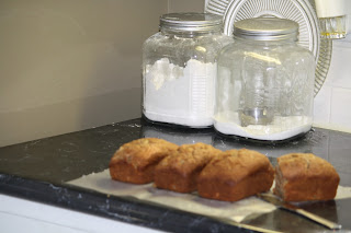 Mr. A. and I went to visit my sister and her family.We enjoyed the first meal from her new crock pot,watched a bit of her sons basketball practice,played rummy,watched football and visited.We had lots of laughs during the card game with her daughter getting a major case of the giggles.The time went way to fast. Mr. A. and I were trying to beat the ice storm that was moving in as we had an hour and a half drive to get home.As we were leaving my sister gave me a recipe and 4 (2 c.) bags of grated apples.So whats a girl to do when armed with a recipe and the exact size bags of apples for the recipe.Make YUMMY apple~ bread of course!